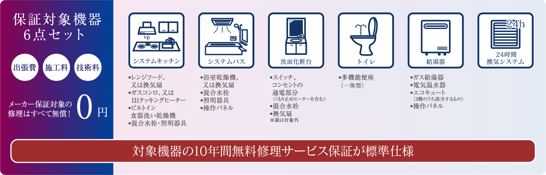 ※該当物件引渡し時に設置された標準機器または設計変更により引渡しまでにトラスト不動産開発株式会社と契約を取り交わし、設置された機器に限ります。