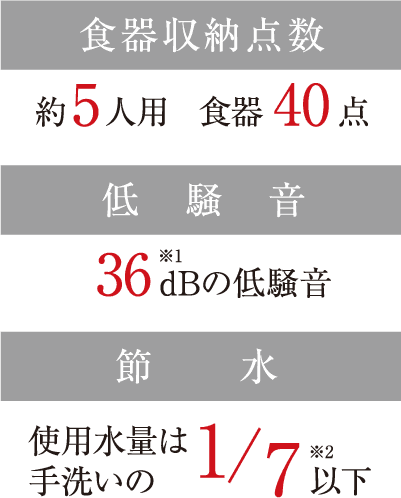 ※1.日本電機工業会新基準での測定(食器容量最大時、パネル取付時)