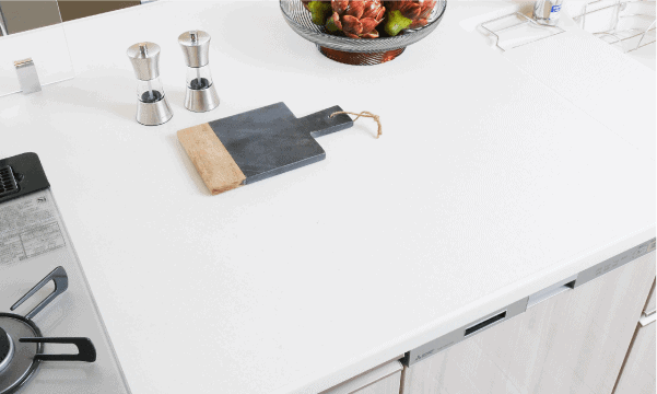人造大理石ならではの美しさや上質感に加え、耐久性・清掃性にも優れた100%アクリル製の高級天板「アクシーマ」を採用。毎日のお手入れも水拭きで片付きます。