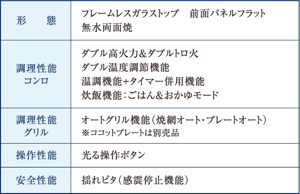 無水両面焼・ワイドグリル付コンロ